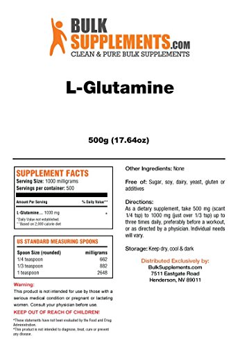 Studio : Bulksupplements Publisher : Bulksupplements Binding : Health and Beauty Product Description Glutamine is one of the most abundant of all of the 20 amino acids, making up over 60% of all skeletal muscle tissue in the body. It can be found in even higher concentrations in more vital organs such as the kidney, liver, heart, and brain. Glutamine is by far the most important of all of the amino acids when it comes to metabolism. It is the main source of fuel used by cells to complete the process of transferring fats, sugars and more into usable energy that the body can store for later. This is because Glutamine can be stored in the body and later converted into glucose, one of the chief energy providers for the body. This is what makes this supplement such an attractive option for high endurance athletes with strict training regimens. It is also used to help the body more effectively burn fat while adding on to overall muscle mass. 0