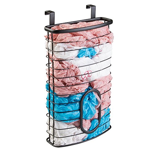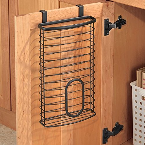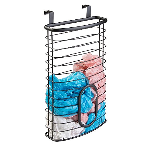 mDesign Over-the-Cabinet Kitchen Storage Holder for Plastic and Garbage Bags - Matte Black