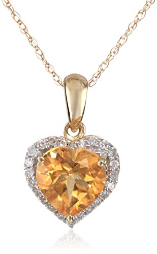 -. Feature : Pendant necklace in 10k gold featuring heart-shape birthstone centerpiece with halo of white sparkling diamonds / 18" rope chain with spring-ring clasp / Imported