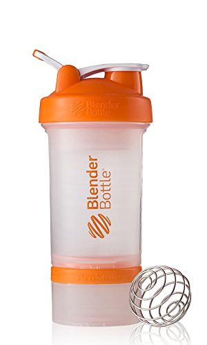 BlenderBottle ProStak System with 22-Ounce Bottle and Twist n' Lock Storage, Clear/Orange