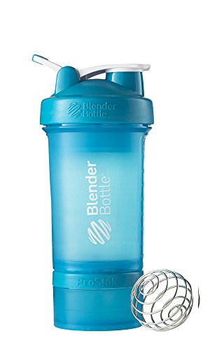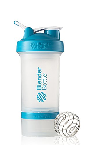 BlenderBottle ProStak System with 22-Ounce Bottle and Twist n' Lock Storage, Clear/Aqua