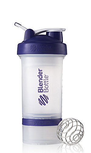 BlenderBottle ProStak System with 22-Ounce Bottle and Twist n' Lock Storage, Clear/Purple