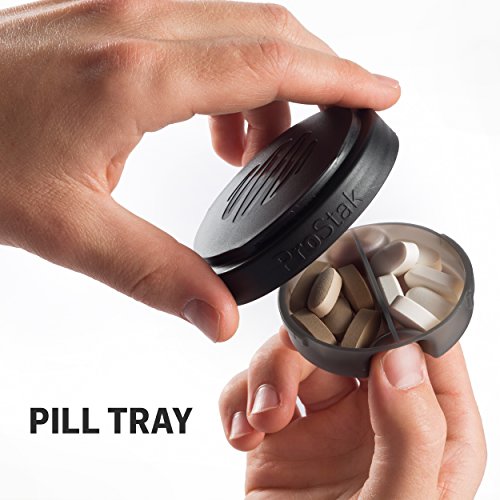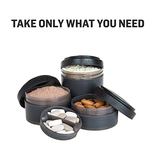 BlenderBottle ProStak System with 22-Ounce Bottle and Twist n' Lock Storage, Black/Black