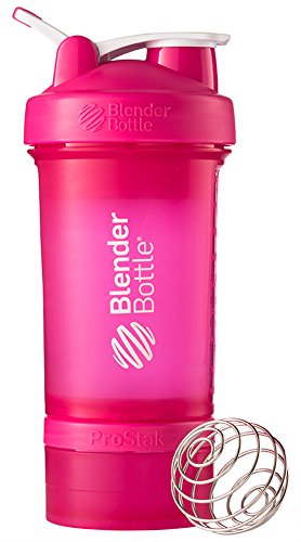 BlenderBottle ProStak System with 22-Ounce Bottle and Twist n' Lock Storage, Clear/Pink