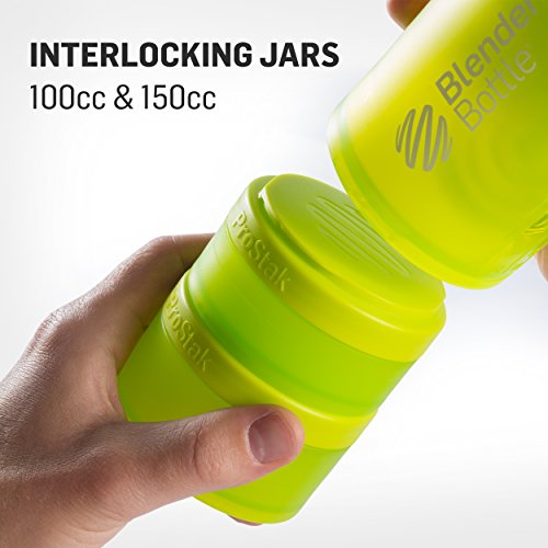 BlenderBottle ProStak System with 22-Ounce Bottle and Twist n' Lock Storage, Clear/Green