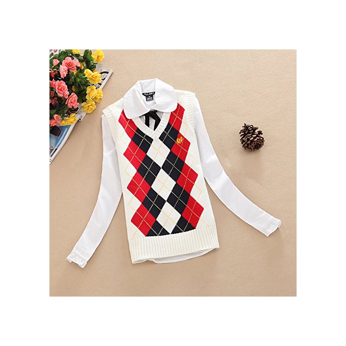 Im.ONE 클래식 베스트 아가일[Argyle] 올드 패션 (L,흰색)
