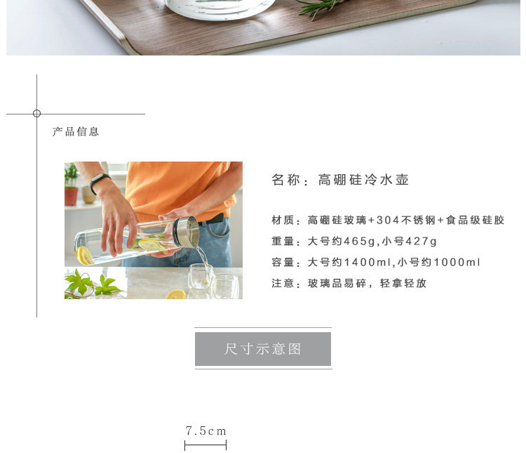 BLOMUS冷水壶耐高温玻璃凉水瓶夏日清凉首选 可放冰箱侧门