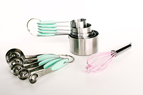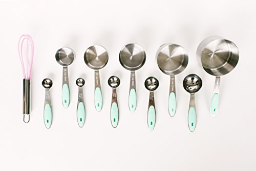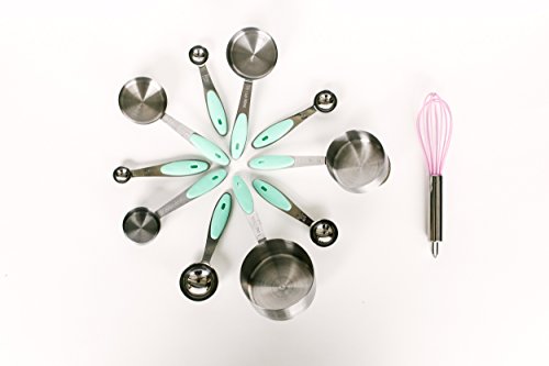 Deluxe Stainless Steel Measuring Cup and Spoon Set with Bonus Whisk...11 piece set of Measuring Cups and Spoons from The Hope Filled Home! (Mint)