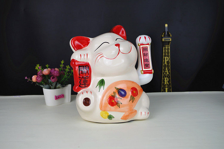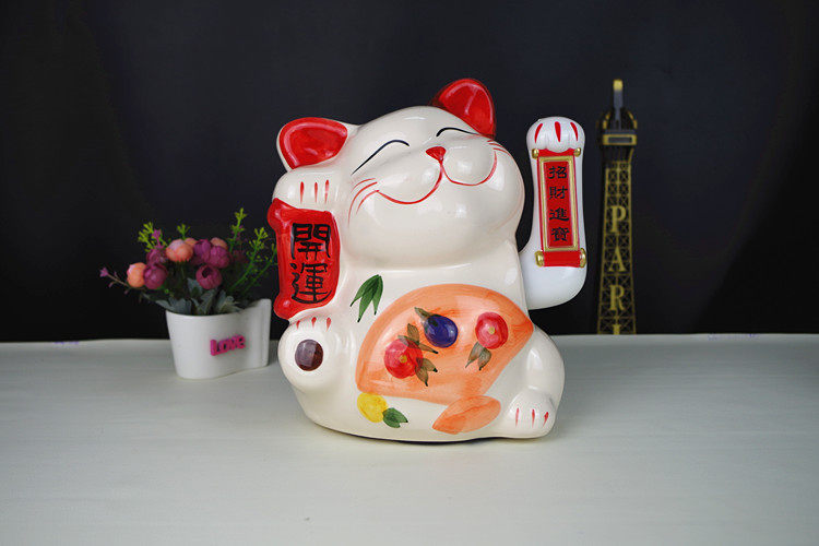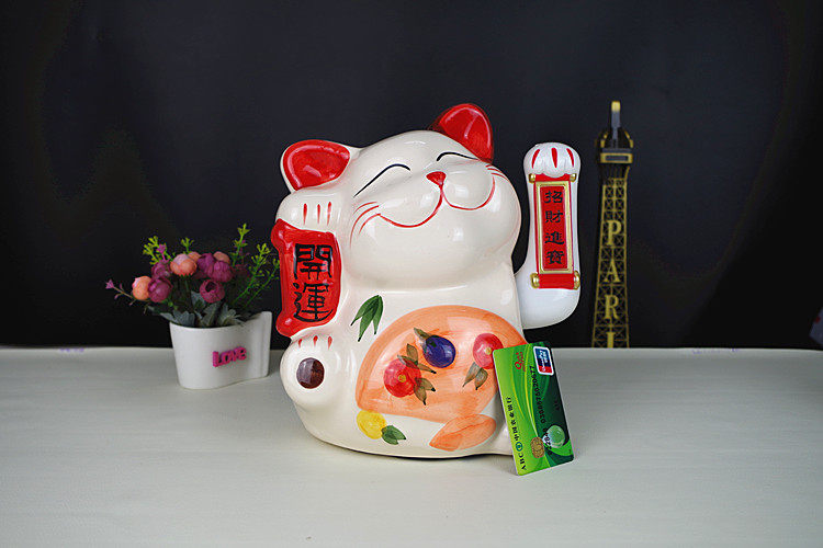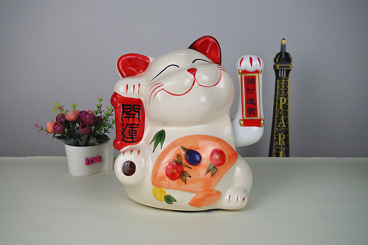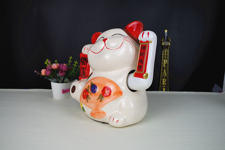 超大号陶瓷开运电动摇手招财猫摆件 送新居乔迁店面开业开张礼品