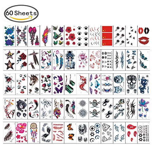 -. Feature : Package include: 60 sheet of temporary tattoos. / Non-toxic and Safe. Extremely durable & Waterproof surface. / Easy to apply, just add water, transfer and remove without any glue. / Variety of designs and styles- use as kids tattoos and adult tattoos. / Decorate your life more beautiful. Fantastic value pack most popular design.