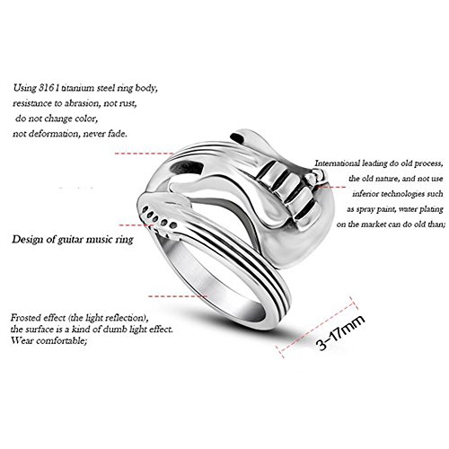 -. Binding : Baby Product -. Brand : Chryssa Youree -. Color : Silver -. Feature : Size: 7/8/9/10/11/12 / Material: Titanium Stainless Steel / Package Includes: 1 X Ring / Sturdy Metal: Stainless steel guarantee high strength and hardness;never fade,highly resistant to rust and corrosion;Need low maintenance; / Comfortable Design:Smooth edges on each link that never scratches or pull your hair;Hypoallergenic:100% safe to wear as it is lead free and nickel free;never worry about turning your neck green. -. IsAdultProduct : 0 -. Label : Chryssa Youree -. Manufacturer : Chryssa Youree -. MPN : 2 -. PartNumber : 2 -. ProductGroup : Baby Product -. ProductTypeName : BABY_PRODUCT -. Publisher : Chryssa Youree -. Studio : Chryssa Youree -. Title : Chryssa Youree Men Women's Gothic Europe Opening Ring Titanium Stainless Steel Jewelry Lovers Rock Classic Music Engraved Guitar Punk Ring Silver Size 7-12 (DJZ-36)
