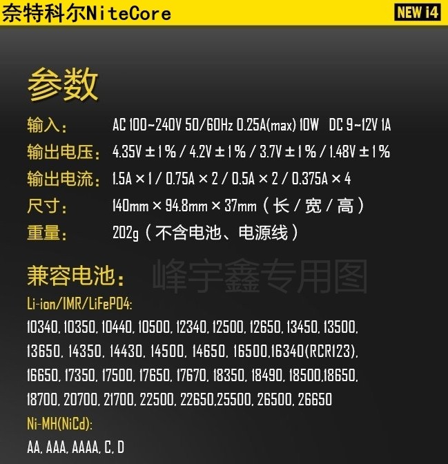 NITECORE NEW I4(智能充电器)标配是充电器1个,电源线1条,(不包电池)