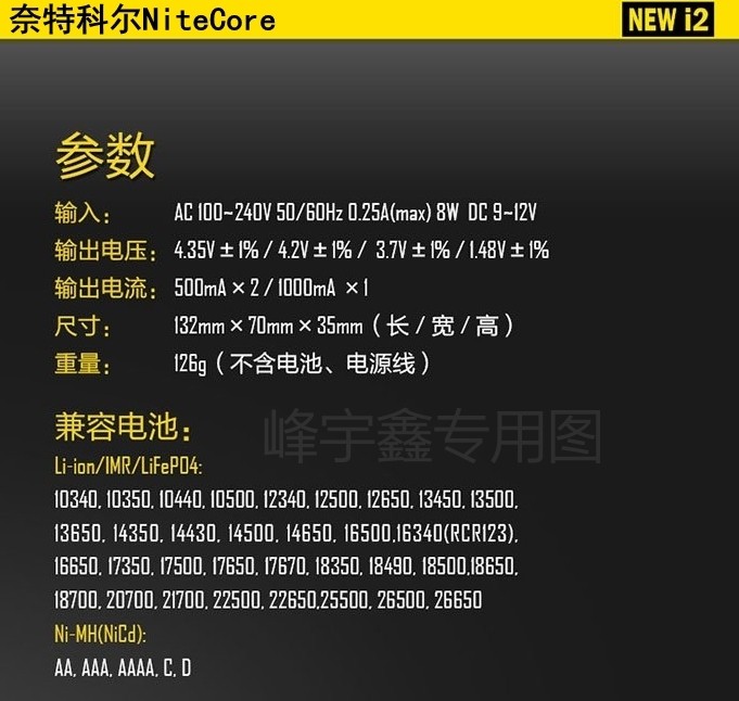 NITECORE NEW I2(智能充电器)标配是充电器1个,电源线1条,(不包电池)
