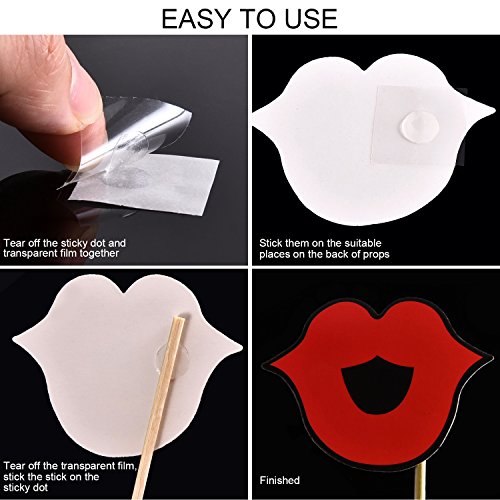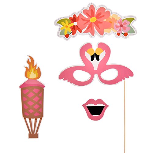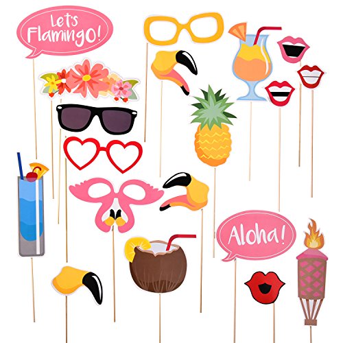 -. Feature : Booth props quantity: 38 pieces (2 sets in total, each set contains 19 pieces of colorful photo props, 20 wood sticks and 20 stick dots) / Hawaiian style props: photo booth props in flamingo, aloha, pineapple, laua, coconut and other cute patterns are good supplies for hawaiian, laua, tropical, beach themed parties / Colorful and eye-catching: these photo props come in various colors and shapes, suitable for both kids and adults, they can help to draw people's attention and show your personality as well / Fun and easy to use: these photo props are made of sturdy cardstock material, props in some special patterns have cut-outs for your easy application, good as party supplies / Wide application: use these stick dots to stick wood sticks on the back of the props, and you can wear them as masks, or you can simply use them to beautify your photos with friends
