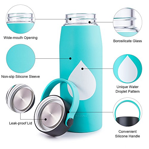 MIUCOLOR Large Glass Water Bottle - Wide Mouth Borosilicate Glass Bottles With Protective Silicone Sleeve & Leak-proof Stainless Steel Lid for Home Sports and Outdoor