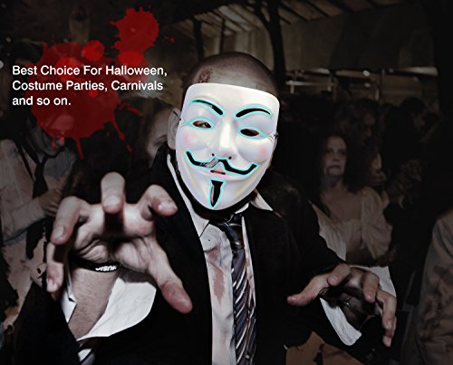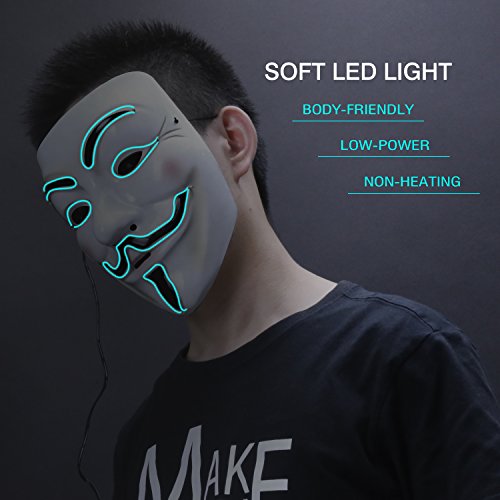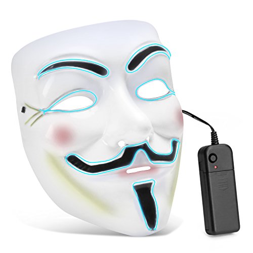 -. Title : Zooawa EL Wire LED Mask, Light Up Luminous Glowing Cool V for Vendetta Mask Party Favor for Christmas, Halloween, Cosplay, Carnival, Masquerade, DJ Show - Iceblue