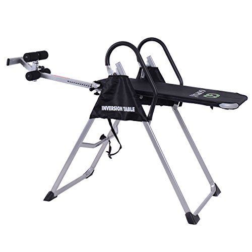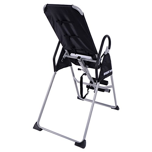 Description This is the our inversion table. An inversion table is a gravitational device that will help you achieve this by placing you in the required "inverted" state. With this inversion table, you can relieve the stress on your lower back, and relieve pressure on the discs and nerve roots. With this heavy-duty table, you can increase blood flow to your lower spine, increase body flexibility. Your discs will recover lost moisture and to return to their original shape. MAIN TREATMENT: Fights Compression Fatigue Helps Posture Increases Body Flexibility Reduces Back Stress Stimulates Blood Circulation Eliminates Back Neck Pain Specifications Color: Black Gray Material: Steel Nylon PE Product Weight: 46lbs Product Size: 47" x 23.6" x 55" Pad size: 19" x 43.5" Adjustable user heights: 4.8' - 6.5' User Weight: 300lbs Max Product Include: 1 x Inversion Table (Need to be assembled) 0 |