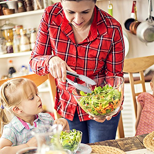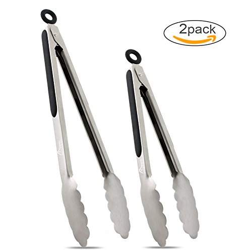 FOOD LEVEL STAINESS STEEL: Hotec kitchen tongs built with stainless steel, sturdy, heat resistance, anti-rust, anti-corrosion, light weight, easy to handle, like new forever. This tongs for cooking comes with a set of 2, standard 9" serving tongs and large sized 12" BBQ grill tongs.