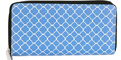 (Variety Gift Shop Fashion Jewelry)/Accessories/Wallets, Money Key Organizers/DIRECT FROM USA/Blue Quaterfoil Print Vinyl Clutch Wallet Bag (Style A)