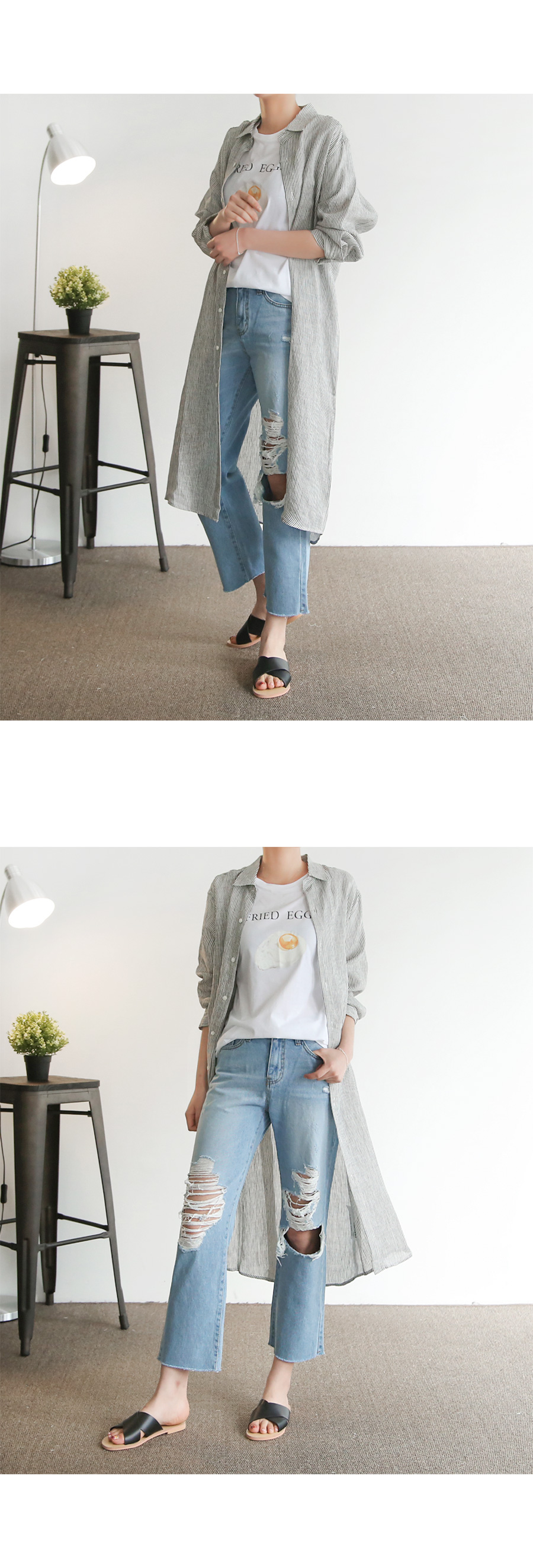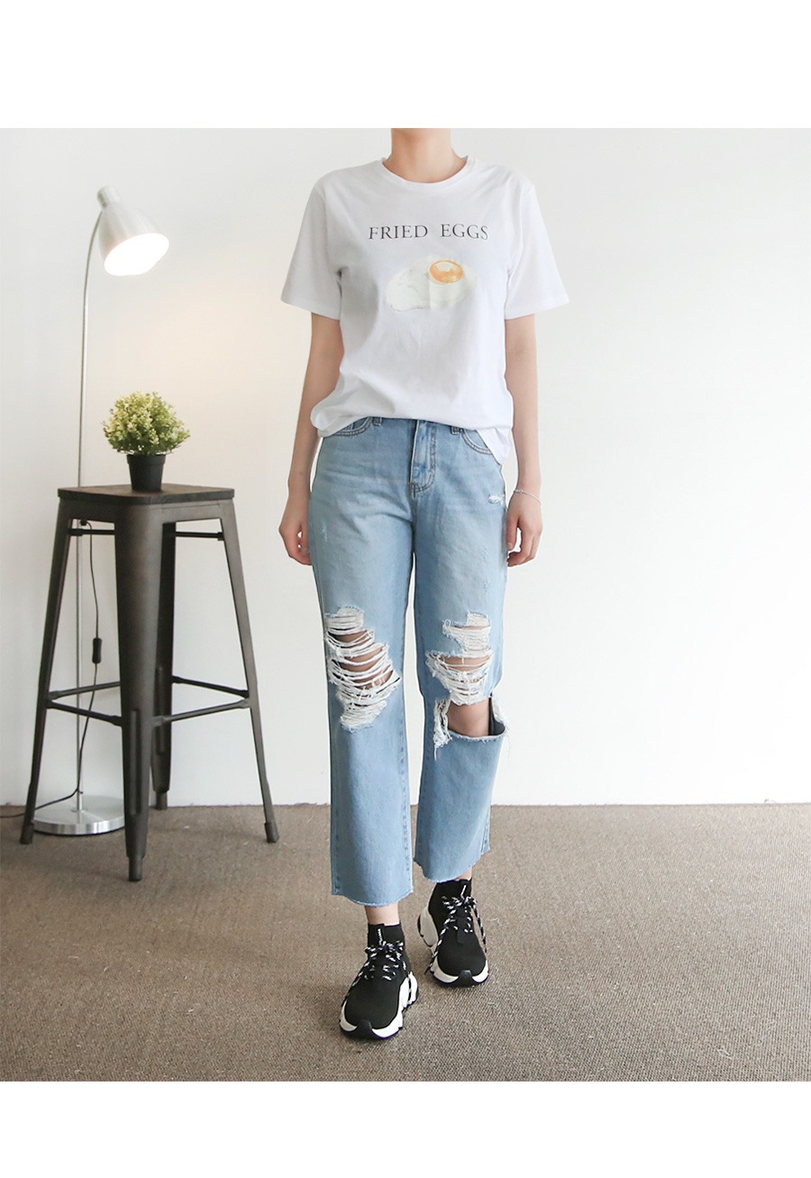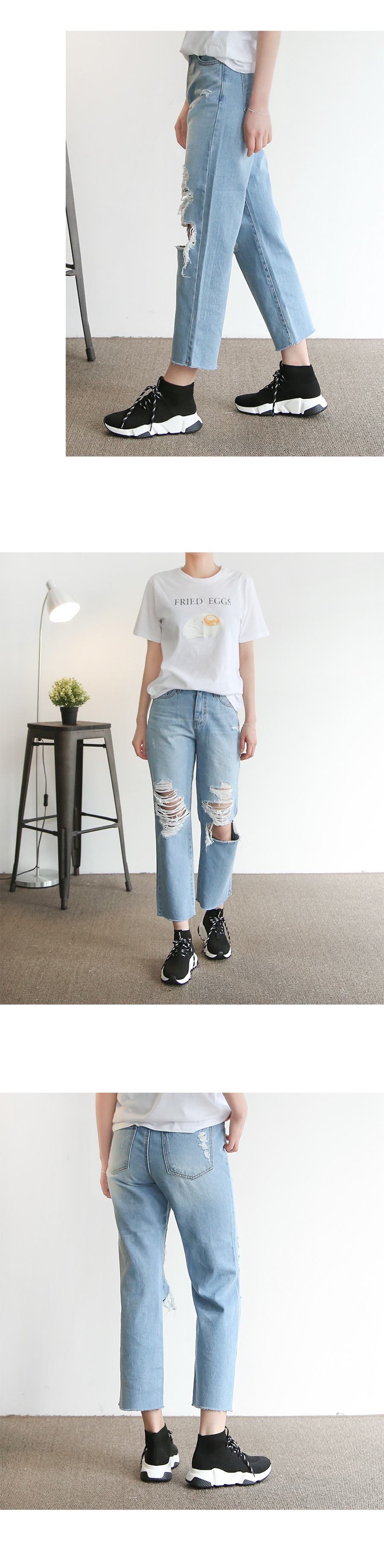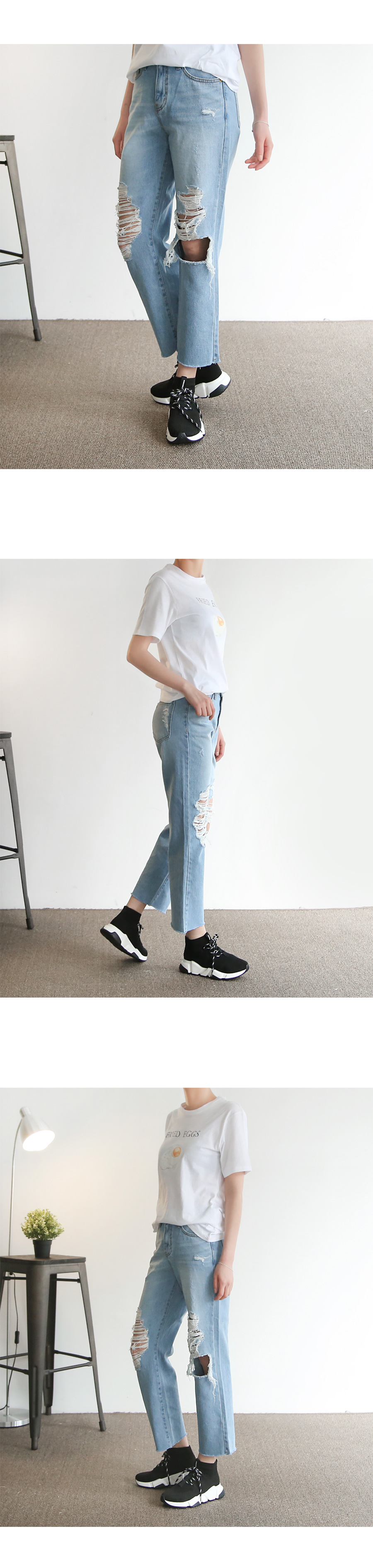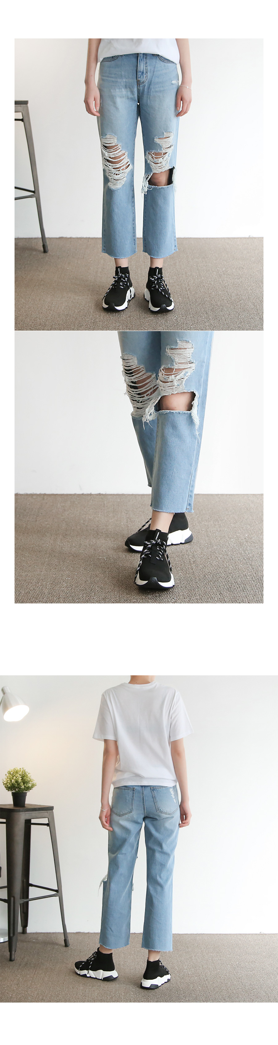 다소 넓은 데미지 디테일로 통기성이 뛰어난 데님팬츠