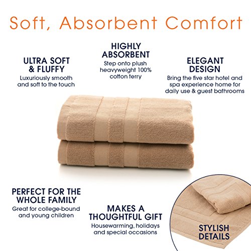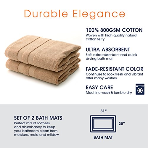Cheer Collection Set of 2 100% Cotton Super Absorbant Tub Shower Bath Mats (20 inches x 31 inches) - Taupe