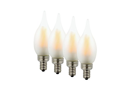 Truth LED Flame Tip Candelabra Filament 3.5 watt (40 watt Incandescent) Frosted Glass, Dimmable, E12 Base, Indoor/Outdoor, LED Light Bulb; Warm Candle Light (2200K), 4-pack