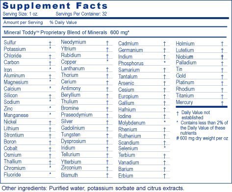 Studio : Youngevity Publisher : Youngevity Binding : Health and Beauty Product Description PLANT DERIVED MINERAL TODDY - 32 FL OZ Providing your body with all the trace minerals it needs each day is easy with Plant Derived Mineral Toddy. Just one ounce of this concentrated liquid mineral supplement supplies at least 70 different minerals in their organic, negatively charged form. Just one ounce of this concentrated liquid mineral supplement supplies all your trace mineral needs (at least 70 different minerals in their organic, negatively charged form). Plant Derived Mineral Toddy provides the full spectrum of trace minerals needed by the body each and every day. Because Mineral Toddy only contains trace amounts of the major minerals, it is recommended that Plant Derived Mineral Toddy be taken with a Full Spectrum vitamin product to achieve integrated nutrition.* Providing your body with all the trace minerals it needs each day is easy with Mineral Toddy. Just one ounce of this concentrated liquid mineral supplement supplies at least 70 different minerals in their organic, negatively charged form. Because Mineral Toddy only contains trace amounts of the major minerals, it is recommended that Mineral Toddy be taken with a full spectrum vitamin product to achieve integrated nutrition.* SUGGESTED USE: Take alone or mix in a glass of fruit or vegetable juice. Take during or after meals, one or more times per day as desired. We suggest 1 ounce per day for adults; for children 5 and over, ½ teaspoon for each 20 pounds of body weight, twice daily. 0