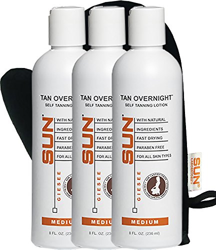 Self Tanning Lotion Tan Overnight 3-Pack - For Light to Medium Skin Tones + Tanning Mitt - Self Tanner - Natural Sunless Tanning by Sun Laboratories