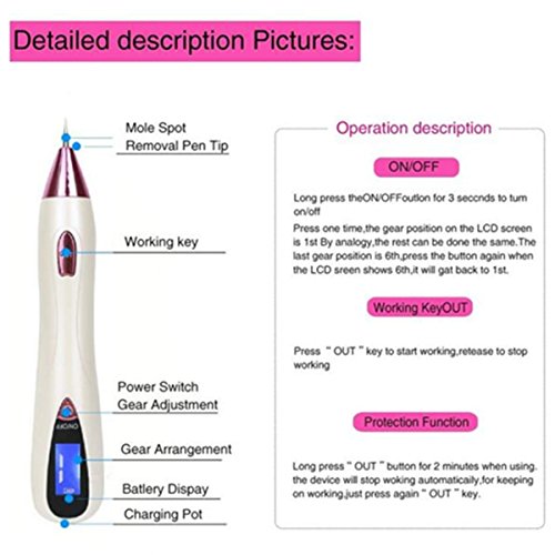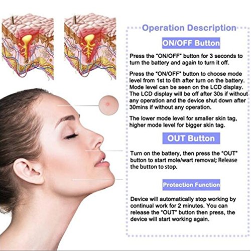 - ★ 2018 Upgrade Version:6 level Strength adjustment for different skins can clean your skin tags step by step.Our mole removal pen is rechargeable with overcharge protection longer service life.(Charge one time it can work more than five hours.)Designed with an LCD display shows the working level and battery level.It also helps you control the device better.