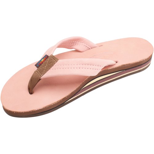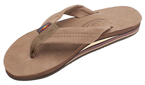 Rainbow has been producing top quality sandals. Each Rainbow sandal is handmade with life support parachute stitching and 2,000 lb tested military specialty straps. Rubber top sandals are constructed of laminated, closed cell sponge rubber, and feature a non-skid surface which molds to the foot thus ensuring a perfect fit for virtually all feet. Each layer of the sole is triple glued with specially formulated, ionized-balanced glue. Even the non-slip rubber bottom sole bears the Rainbow name, as a trademark of excellence.
