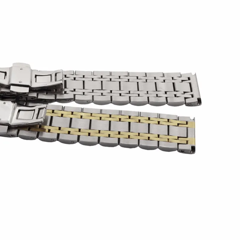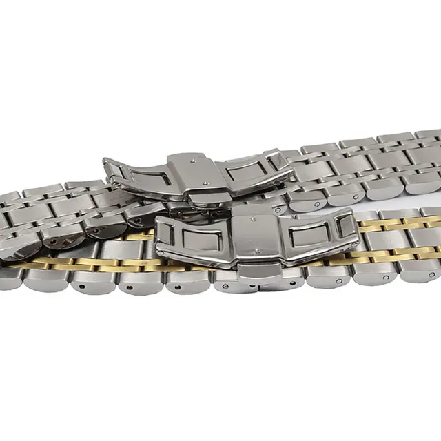 상품 내용 항목 설명 밴드 폭: 14 미리메터/16 미리메터/18 미리메터/19 미리메터/20 미리메터/21 미리메터/22 미리메터/24 미리메터/26 미리메터 (직선) 밴드 길이: 약 180 미리메터 (버클 폐쇄) 버클 스타일: 걸쇠 밴드 재질: 316 L 스테인레스 스틸 밴드 색상: 실버/두 톤 밴드 두께: 3.5-4 미리메터 작은 선물: 두 봄 동위 작은 도구 지원 도매