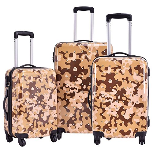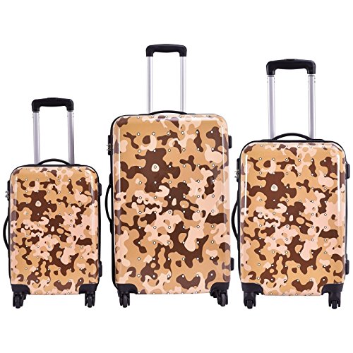 Studio : S E Publisher : S E Product Description Buy yourself this all new travel cases with this earthy camouflage design. This is fun and totally durable to carry your stuff. A great item to have. Set includes: 3 Suitcases; 20' Luggage Size:13'(L) X 8.1'(D) X 48.2'(Height W/Handle), 20' Handle Height:12.6'-20.9', 24'Luggage Size:15.4'(L) X 9.8'(W) X 40.5'(Height W/Handle), 24' Handle Height:17.3', 28'Luggage Size:17.3'(L) X 11'(D) X 40.5'(Height W/Handle), 28' Handle Height:13'. Features: Lightweight, Spinner, Hardsided and Durable | Materials: ABS 0