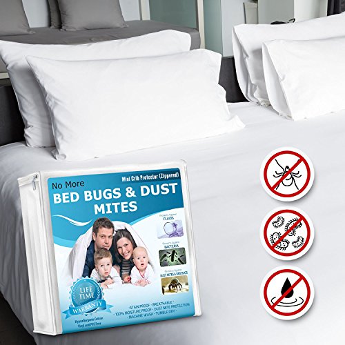 Mini Crib Mattress Protector - 100% Waterproof, Hypoallergenic, Bed Bug Proof - Premium Zippered Cover