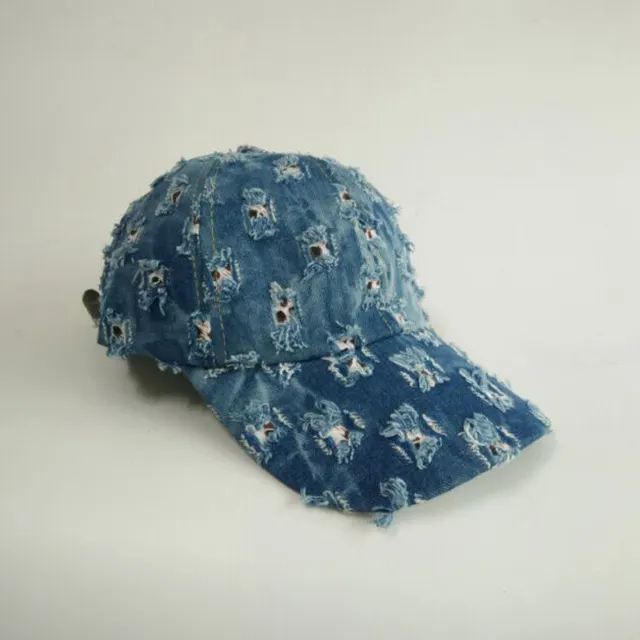 | [해외]여름 남성 여성의 데님 캡 조절 야구 빈티지 고민 데님 모자 구멍 |