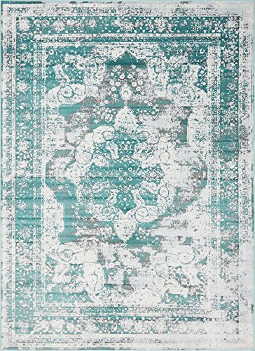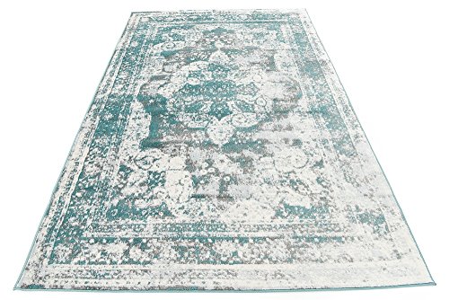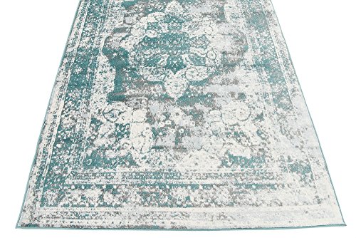 This Turkish Sofia rug is made of Polypropylene. This rug is easy-to-clean, stain resistant, and does not shed. Colors found in this rug include: Turquoise, Blue, Gray, Ivory. The primary color is Turquoise. This rug is 1/3" thick.