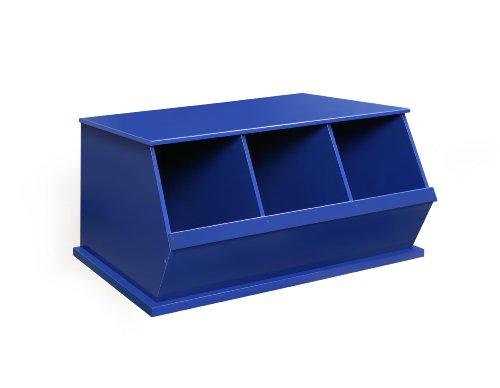 Badger Basket's Three Bin Stackable Wood Storage Cubby/Bin is a sturdy, modular storage solution for keeping all sorts of items tidy and out of sight. Features three generously sized open bins that can be stacked with other bins to expand your storage capacity (each bin unit sold separately). Overall unit measures approximately 37 inches Wide x 19.3 inches Deep x 17 inches High and weighs 36 pounds. Can be used for storing books/magazines/newspapers, toys, clothes, shoes and boots, winter accessories, sporting goods, videos/DVDs/CDs, craft supplies and more. Three bin design helps with sorting and separating items. Each bin measures 11 inches Wide x 17.5 inches Deep x 15.6 inches High. Wide mouth bin openings make it easy to load and unload (height from floor to top edge of front panel is 9 inches). When you need to clean up quickly, it's a breeze to stuff everything inside. Great for kids when learning to sort organize and clean-up. For more storage, stack additional units (sold separately) next to or on top. Solid panel construction ensures that your treasured items stay inside the unit-nothing falls out the back or sides. Easy assembly with a screwdriver and illustrated instructions. Wipe the wood surfaces clean with a damp cloth and mild detergent as needed and dry thoroughly. Made with wood composites. When stacking multiple bins, you must always use the included safety brackets to secure the units together. Product may vary slightly from shown. Toys and accessories shown with the bins are not included. This item ships in its original carton which may include a photo of the product. All measurements approximate. Non-toxic painted finish. Metal hardware. Mix and match with Badger's Two-Bin units and/or Shelf Storage units. If stacking three or more bins high, we recommend using wall anchor/furniture safety straps (not included) to anchor the units to the wall for safety and stability.Feature