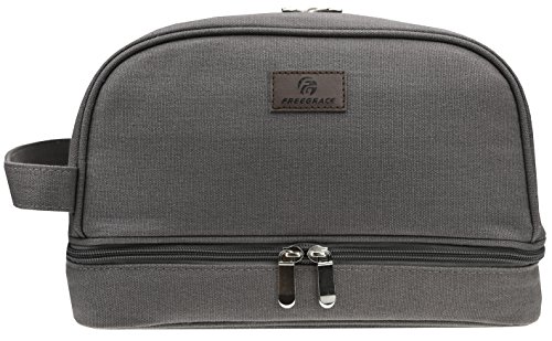 Premium Canvas Toiletry Bag By Freegrace - Large Dopp Kit For Men & Women - The Perfect Travel Essentials Organizer – Ideal For Cosmetics, Personal Items, Shaving Sets, Shampoo, Body Wash & More