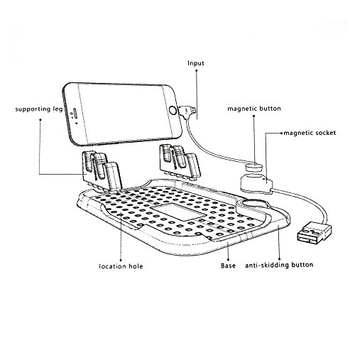 -. Feature : MULTIFUNCTIONAL- It's a cell phone holder while you are driving.It will definitely improve the driving experience and security of driving.And also it can be a small storage place for your small things(key,card,another phone....) / CHARGING PLACE FOR SMART PHONE- The Convenient magnetic charging port with super fast micro USB 2 in 1 cable,can charge the iPhone,Sumsung and any other smartphone easily and quickly while traveling. / QUALITY MATERIAL&EASY INSTALLATION- Made of Environmental Quality Silicone, it's light and durable.NO need Screwdriver,NO need glue,all you need is place the car mount on your car dashboard then it will show you. / STAY AND HOLD FIRMLY- It can be directly adhere to dashboard of cars,trucks,SUV etc.The base of this stand which is a flat silicone so that it can stay firmly and won't slide when turning.It's a good dashboard mount no matter high speed or low. / WHAT YOU GET- One flexible and durable car holder, one small storage place ,one 2 in 1 super micro USB cable, one good helper,one year warranty,one friendly customer service team.