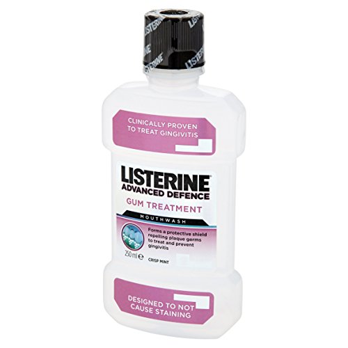 -. Binding : Health and Beauty -. EAN : 3574661091013 -. Feature : LISTERINE Advanced Defence Gum Treatment for healthier gums in as little as two weeks / Clinically proven to treat gum disease as an adjunct to mechanical cleaning / Clinically proven to interrupt the plaque colonisation process, and Plaque is a major cause of gum disease / 250ml bottle size -. IsAdultProduct : 0 -. Label : Listerine -. Manufacturer : Listerine -. Model : 8180602 -. MPN : 8180602 -. PackageQuantity : 1 -. PartNumber : 8180602 -. ProductGroup : Beauty -. ProductTypeName : HEALTH_PERSONAL_CARE -. Publisher : Listerine -. Studio : Listerine -. Title : Listerine Advanced Defence Gum Therapy 250ml