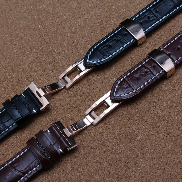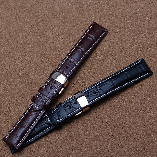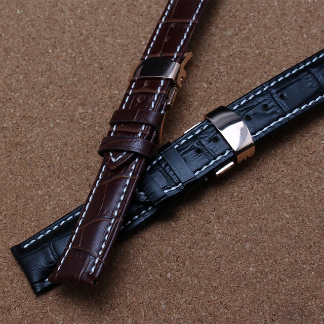 | [해외] 화이트 라인 스티치 블랙 브라운 정품 가죽 손목 rosegold 버클 20 미리메터 시계 액세서리 팔찌 시계 스트랩 밴드 |