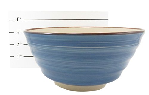 ADD TO YOUR COLLECTION: These beautiful blue bowls will make a great addition to your Asian dinnerware. This set includes: 2 ceramic bowls (24 fl oz - 7" x 3.75") with dark brown rims. Microwave and dishwasher safe.