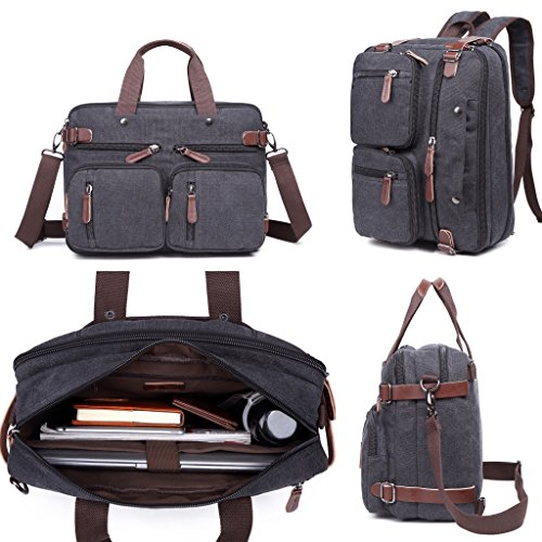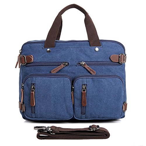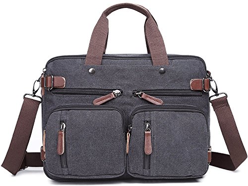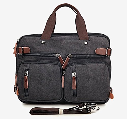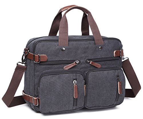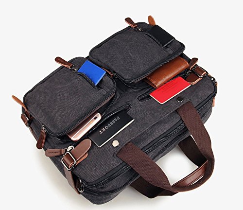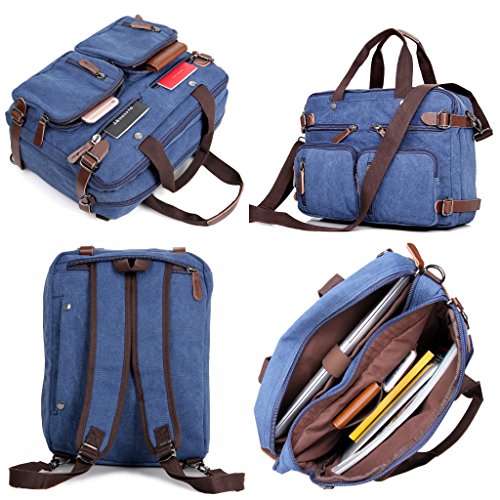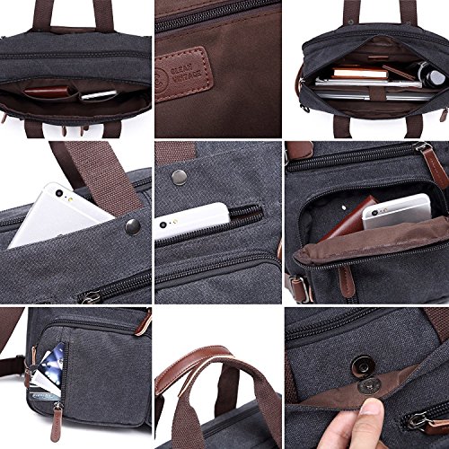 -. Feature : Backpack Messenger Bag as a Laptop bag; it has a padded compartment for your laptop- it could easily function as 13.3, 14, 14.4 inch or up to 15" laptop-computer models. It is advisable to check your computer actual measurement against those of the bag- 15 x 5.5 x 12.2 inches / The perfect Daypack. Not only a laptop bag. Clean Vintage Backpack Messenger Bag gives a room to your laptop; but the bag, as hopefully life, does not exhaust itself with this one-function. Besides easily transforming from a backpack to a messenger bag, the universal appeal of its vintage style, as its expandable capacity, makes it a good fit for many uses indeed; in that sense, CV Hybrid Backpack Laptop Messenger Bag is your must-be daypack- good for school, as for traveling as well / Clean Vintage classically-inspired & styled briefcase-like messenger bag for men / women is fashioned mainly from a waxed canvas and a bit of leather straps, which add, in turn, to the rustic appeal of this canvas leather messenger bag. / Cut for function and performance, Clean Vintage convertible, 3 in 1 bag- both a messenger bag and a backpack in one bag- okay, it is a briefcase/handbag as well- is made out of first class canvas and leather trim. / Besides easily transforming the bag from a backpack to a messenger bag, the universal appeal of its vintage style, as its expandable capacity, makes it a good fit for many uses indeed. Whatever and wherever you choose, Clean Vintage Hybrid Backpack Laptop Messenger Bag could prove itself as your first-choice bag
