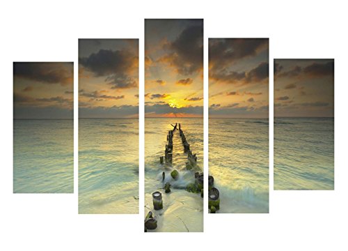 ELEMENTEM PHOTOGRAPHY 5-PANEL CANVAS LANDSCAPE PHOTOGRAPHY: "ENDLESSLY OUT TO SEA #5" PENTAPTYCH WALL ART PRINT, 60" X 40"