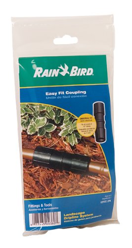 -. Binding : Lawn & Patio -. Brand : Rain Bird -. EAN : 0077985003807 -. Feature : Landscape dripline system / Easy fit coupling - 2 pack / Requires up to 50 percent less force to install tubing / Faster, more convenient way to make more drip connections in a lot less time; max temp 100 deg F, black in color / Easily insert any manufacturers s drip tubing from 16 mm to 18 mm into the fitting and connect -. Label : Rain Bird -. Manufacturer : Rain Bird -. Model : EZFITC/2PS -. MPN : EZFITC/2PS -. NumberOfItems : 2 -. PackageQuantity : 1 -. PartNumber : EZFITC/2PS -. ProductGroup : Lawn & Patio -. ProductTypeName : OUTDOOR_LIVING -. Publisher : Rain Bird -. Studio : Rain Bird -. Title : Rain Bird EZFITC2PK Drip Irrigation Easy Fit Universal 1/2" Coupling, Fits All 1/2" - 5/8" Tubing, 2-Pack -. UPC : 077985003807