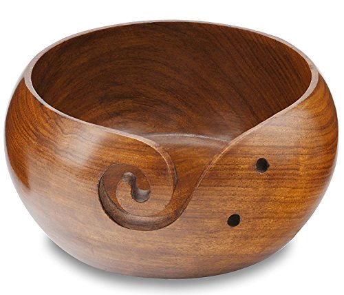 Naaz wood arts Yarn Bowl-6"x3" Rosewood -Wooden with . Handmade from Sheesham wood- Heavy & Sturdy to Prevent Slipping. Perfect Yarn Holder for Knitting & Crocheting