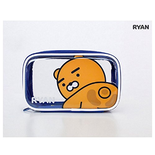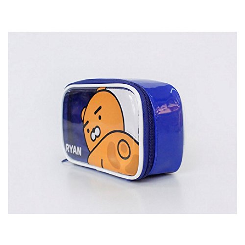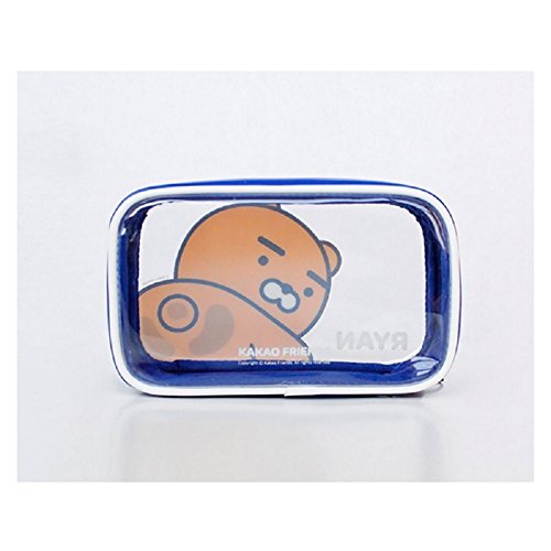 Kakao Friends Character Clear Pouch Travel Cosmetic Makeup Bag Cases (Blue-RYAN)