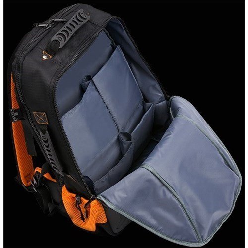 -. Feature : Padded laptop cradle for all-round protection / For 17 in Gaming Laptop / Ergonomic padded back panel and adjustable shoulder straps / Multi-functional compartment for all your gaming gear / Foldable rain cover provides all-weather protection
