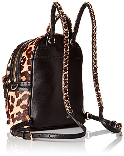 -. Title : Black Label Calf Hair Leopard P.R.Inted Mini Backbag with Gold Chain Detailing