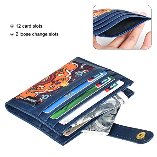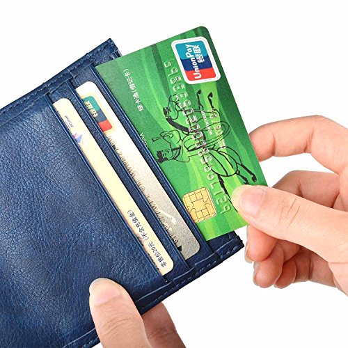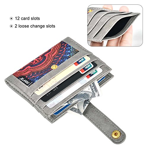 -. Feature : MADE FROM PU LEATHER WITH CANVAS : This thin card sleeve is made from pu leather with canvas ,durable and stylish .Comfortable to use. Great slim card sleeve wallet for carrying your most frequently used cards and some bills. / ULTRA SLIM FRONT POCKET WALLET: The leather card holder is designed to be slim and feels amazingly soft. Sturdy enough to last a long time, its super slim figure makes it easy to slide into your front pocket. It is thin, fits perfect in your pocket and can hold at least 12 cards and some folded cash comfortably. / SLIM WALLET CARD HOLDER CASE MEASURES: 4.0L x 0.5D x 3.5W inches . 6 card slots on either size and 2 top middle compartment where you can put notes, receipts or some folded cash, giving you a bulk free pocket while feeling thin and light. / SPECIAL MINIMALIST WALLET DESIGNED - STRAP WITH SNAP BUTTON: The slim front pocket wallet is very simple and personality, it is not only lightweight, it sewing a strap with snap button to prevent cards and cash drop. / DAILY USE AND DRESS COLLOCATION: It is perfect for a night out tucked away almost invisibly in your pocket and it won't look like that you are bring a brick when you are bringing all the necessary. Professional for business cards or a small wallet which carry the cards you often use .Whether you wear jeans, shorts, or slacks, it fits perfectly in front or back pocket without being noticed. Ideal gift for your family members and friends.