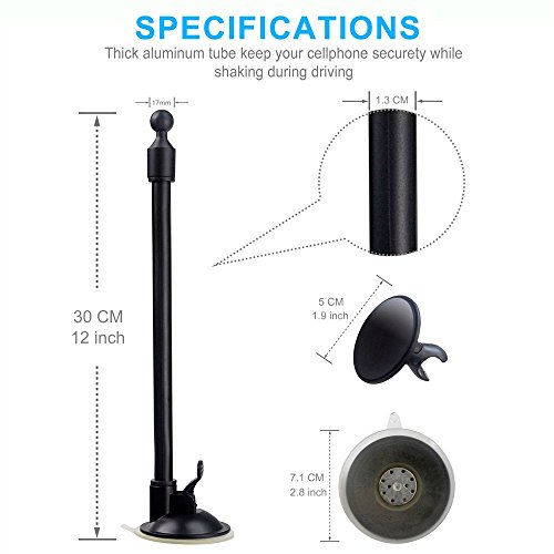 [Long Arm with Flexible Base]---An extra lengthen thick al pipe together with flexible base makes you could touch your devices more easily, especially useful for windscreen and unevenness dashboard